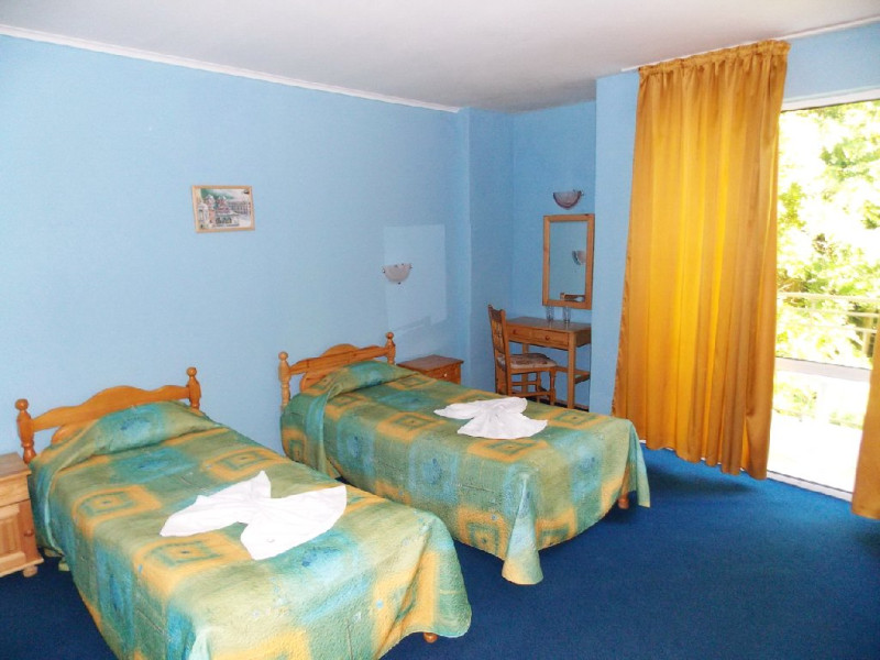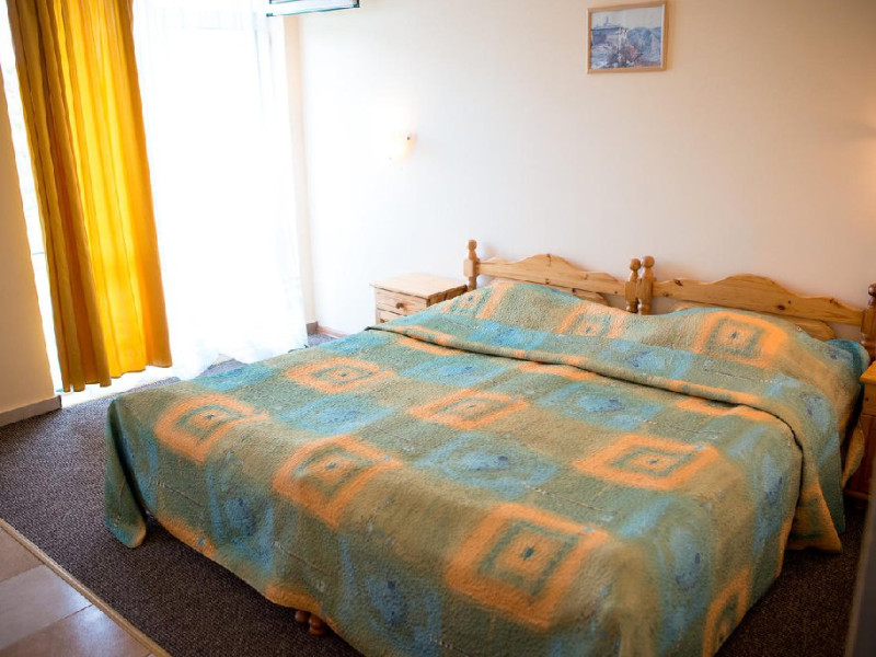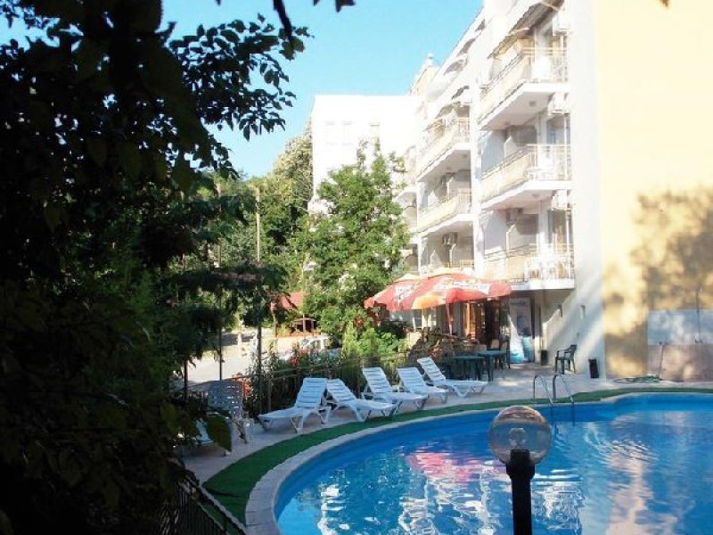 Localizare: la 550m de plaja, in a treia linie de hoteluri. Ultima renovare - 2012. Capacitate: 110 camere duble. Facilitati: piscina exterioara, cladire cu 4 etaje, conexiun la internet - wifi, sala de internet, magazin, restaurant, biliard, tenis de masa, fitness. Facilitati pentru copii: piscina, patut pentru infant (contra cost), teren de joaca. Camerele duble (cca. 17 mp): pat dublu sau twin, fotoliu, vedere la mare / parc, aer conditionat, tv, telefon, balcon, conexiune la internet (contra cost), podea acoperita cu parchet / gresie / mocheta, stand uscator de rufe, chicineta dotata cu frigider si masa de calcat, baie dotata cu dus, set cosmetice, uscator de par, telefon, toaleta. Hotelul dispune de un magazin unde puteti cumpara bauturi racoritoare si bauturi alcoolice, apa, sucuri, dulciuri ambalate si produse sarate, bere etc. la preturi normale.