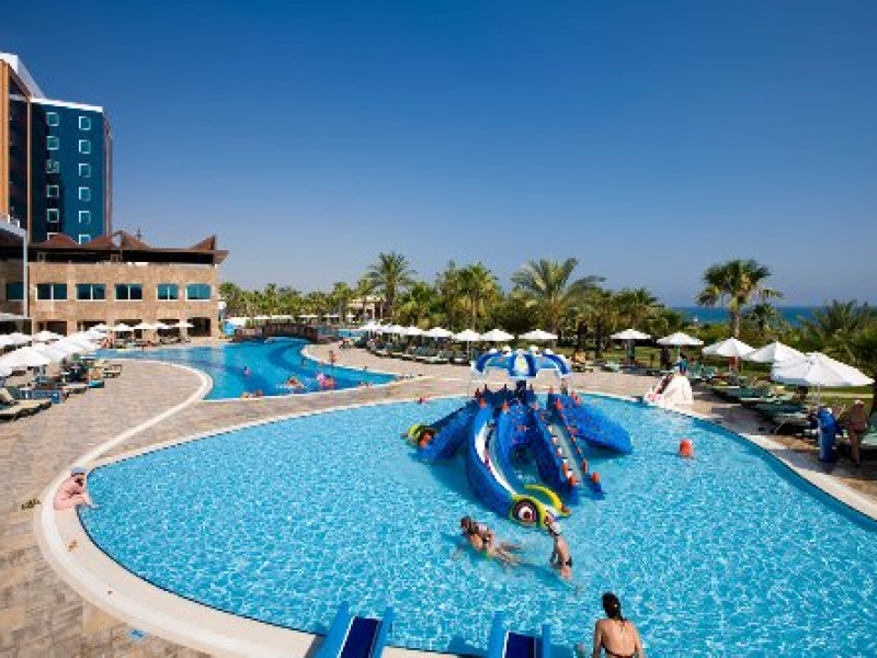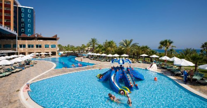 Construit in anul 1992, renovat in 2008, cu o suprafata de 33.491mp, hotelul dispune de 305 camere repartizate astfel: cladirea principala cu 6 nivele, 4 cladiri separate cu 4 nivele –Terrace House 1 cladire separata -Beach House. Cladirea principal: 74 camere deluxe cu vedere la gradina (suprafata 24-34mp,capacitate maxima 3 pax); 126 camere deluxe cu vedere la mare (suprafata 24mp,capacitate maxima 3 pax); 4 camere familiale (suprafata 34mp, capacitate maxima 4 pax); 18 suite familiale ( suprafata 33-53 mp,capacitate maxima 4+1 pax) ; Beach House : 32 camere cu vedere la mare ( suprafata 34mp,capacitate maxima 4 pax ); Terrace House : 24 terrace room cu o camera (suprafata 43-45 mp,capacitate maxima 3 pax); 24 terrace family room cu 2 camere (suprafata 57-59 mp,capacitate maxima 4 pax); 1 king suit cu 3 camere (suprafata 266 mp, capacitate maxima 6 pax); Penthouse : 1 penthouse suit cu 3 camere (suprafata 305 mp,capacitate maxima 6 pax); 1 presidential suit cu 3 camere (suprafata 542 mp,capacitate maxima 10 pax); Localizare: pe plaja , la 10km de Side, 65 km de centrul orasului Antalya si la 55 km de aeroportul din Antalya. Dotari camera: telefon,TV-satelit, minibar ( bauturi racoritoare si bere –se suplimenteaza zilnic gratuit), aparat de incalzit apa, aer conditionat centralizat (cladirea principala),aer conditionat individual ( terrace house +beach house si penthouse), seif, internet wi-fi, zona de relaxare, mocheta ( cladirea principala), gresie ( beach house ),parchet laminat (terrace house + si penthouse ), balcon. Camerele familiale sunt prevazute cu 2 dormitoare separate printr-o usa dar fara balcon. Terrace family sunt prevazute cu 2 dormitoare separate printr-o usa; king suit prevazut cu 3camere ( 2 dormitoare separate printr-o usa, hol ;bucatarie ;2 mini-baruri, 2 bai, Jacuzzi ,terasa ). Penthouse suite : prevazut cu 3 camere ( 2 dormitoare cu usa, hol, bucatarie, 2 minibaruri,2 bai, jacuzzu, terasa si piscina). Presidential suite similar cu penthouse dar fara piscine. Schimbarea lenjeriei se face de 2 ori /saptamina . Facilitati hotel: restaurant principal, 5 restaurante a la carte(pescaresc, chinezesc, italian,turcesc, mexican), 7baruri, piscina exterioare, o piscina interioara, piscina relaxare, aquapark cu 6 topogane, animatie, discoteca, cinema (in hotelul Fulya )mini si junior club , mini zoo, tenis, 3 terenuri fotbal, volei pe plaja, aerobic, centru fitness, centru Spa (in hotelul Fulya ) . Servicii cu plata: telefon, fax, centru de infrumusetare, activitati sportive pe nocturna, inchiriere echipament, biliard,bowling, sporturi de apa motorizate, catamaran cu pinza (cu licenta) ,diferite magazine, doctor, servicii de spalatorie, rent-a-car. Plaja : de nisip . Sezlongurile si umbrelele sunt gratuite. Alte informatii : accesul la restaurantele a la carte se face pe baza de rezervare ; in restaurante tinuta este obligatorie; carduri acceptate: Visa, Master Card; animalele de companie nu sunt permise; in functie de conditiile meteorologice, programul de functionare a restaurantelor si barurilor se poate modifica.Hotelul isi rezerva dreptul de a modifica conceptul in timpul sezonului fara a anunta in prealabil aceste modificari.
