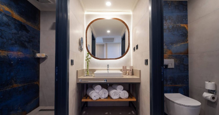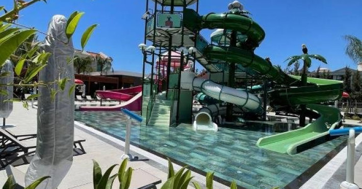 Facilitati hotel: Oaspetii pot beneficia de restaurant principal, restaurant A la Carte, baruri, piscine exterioare, piscina interioara, tobogane, sezlonguri si umbrele, programe de animatie si divertisment, centru fitness, centru spa, volei, pilates, yoga.