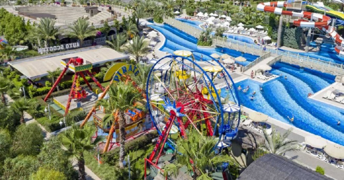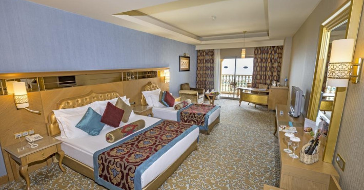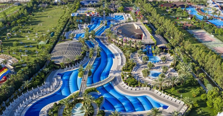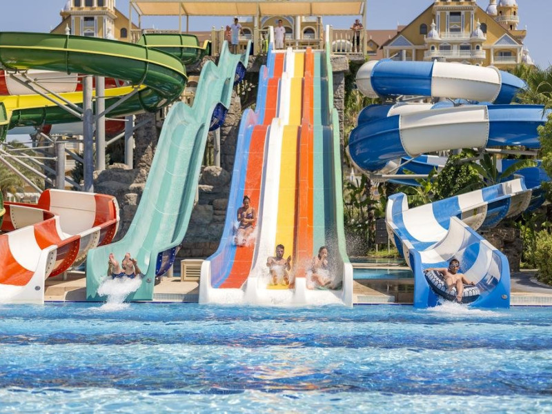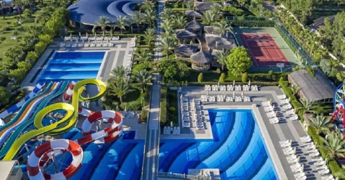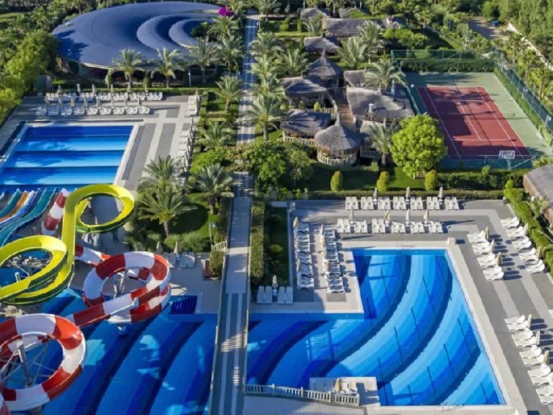 Facilitati hotel: restaurant principal, restaurant pentru copii, 5 restaurante a la carte, 9 baruri, bistro si patiserie, cafenea, piscina exterioara, aquapark cu 5 tobogane pentru adulti si 3 tobogane pentru copii, piscina interioara incalzita (doar in sezonul de iarna), miniclub pentru copii, lunapark, hammam, sauna, centru fitness, aerobic, volei pe plaja, teren de tenis si echipament (cu rezervare), darts, tenis de masa, animatie, muzica live, mini discoteca, loc de joaca pentru copii, internet wireless, sali de conferinta.