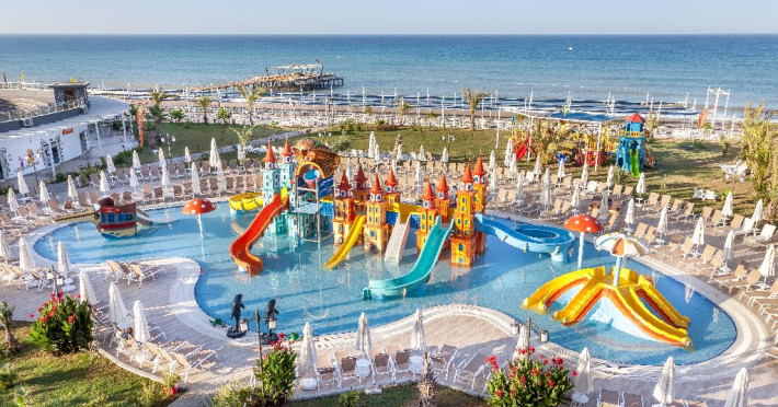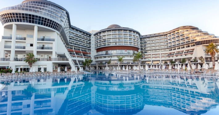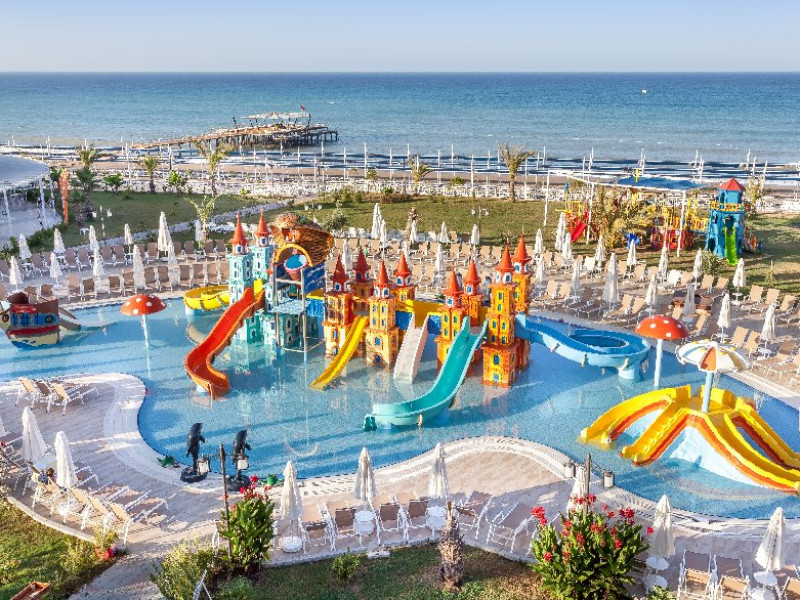 Facilitati hotel: Hotelul ofera oaspetilor sai urmatoarele facilitati: restaurant principal, 5 restaurante a la carte (asiatic, turcesc, italian, mexican, pescaresc), patiserie, 7 baruri, discoteca, 3 piscine exterioare, piscina 6 cu tobogane pentru adulti, piscina cu 5 tobogane pentru copii, piscina interioara pentru adulti si copii, internet wi-fi, programe de animatie, muzica live, seara turceasca, volei pe plaja, aerobic, darts, jocuri la piscina, centru fitness, mini fotbal, teren de tenis, sauna, baie turceasca, mini club (4-12 ani), mini disco, loc de joaca, bufet pentru copii in restaurant. Servicii cu plata: bauturile din import, bauturile servite in clubul de noapte, bauturi premium, fresh-uri din fructe, sporturi acvatice, room service, servicii medicale, servicii de curatatorie, sala de jocuri, masaj si alte tratamente in centrul SPA.