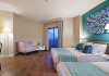Dotari camere: Hotelul are un total de 238 de camere, toate dotate cu aer conditionat, TV, Wi-fi, telefon, minibar, seif, facilitati pentru preparare ceai sau cafea, baie privata, uscator de par, halat, papuci, balcon.