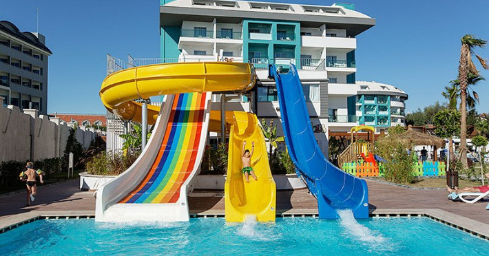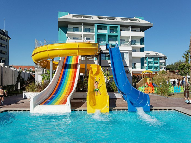 Facilitati hotel: Oaspetii beneficiaza de restaurant principal, restaurant A la Carte, baruri, terase, piscina exterioara, piscina interioara (inchisa in sezonul de vara), sezlonguri si umbrele, tobogane, sala fitness, centru spa, temis de masa, darts, volei, boccia, programe de divertisment, sala de conferinte, piscina pentru copii, miniclub, minidisco.