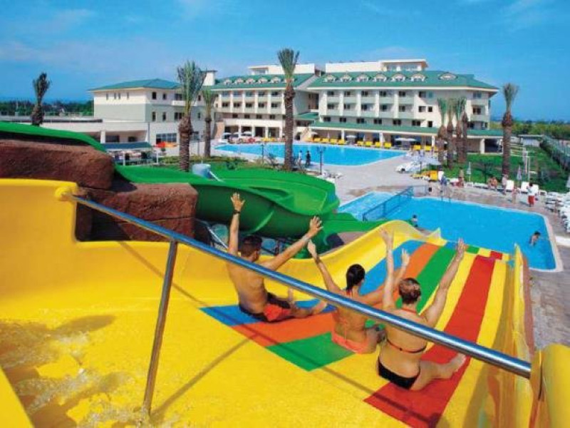 Facilitati hotel: Hotelul ofera oaspetilor sai multiple facilitati: 1 restaurant principal in cladirea principala si 1 restaurant principal pe plaja, 2 restaurante a la carte (italian si pescaresc), 5 baruri, discoteca, 2 piscine exterioare, 1 piscina pentru copii si 1 piscina interioara, tobogane, centru spa, sauna, baie turceasca, fitness, tenis de masa, sah, volei, animatie, seri tematice, curatienie zilnica in camera, tobogan pentru copii, mini club pentru copii (4-12 ani), loc de joaca pentru copii, bufet pentru copii, mini disco, amfiteatru cu diverse activitati pentru copii. Servicii cu plata: biliard, sporturile pe apa (navigatie, sporturi motorizate), tratamente in centrul spa, masaj, curatatorie, darts, doctor, colt cu internet, fotograf, coafor, magazin de suveniruri si haine, magazin de bijuterii, rent a car.