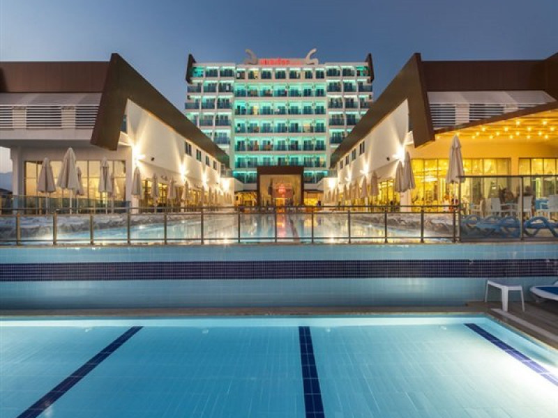 Descriere: Hotelul este situat in statiunea Alanya, la cativa pasi de mare unde ofera turistilor o zona de plaja privata iar distanta fata de centrul orasului Alanya este de doar 10 km.