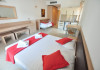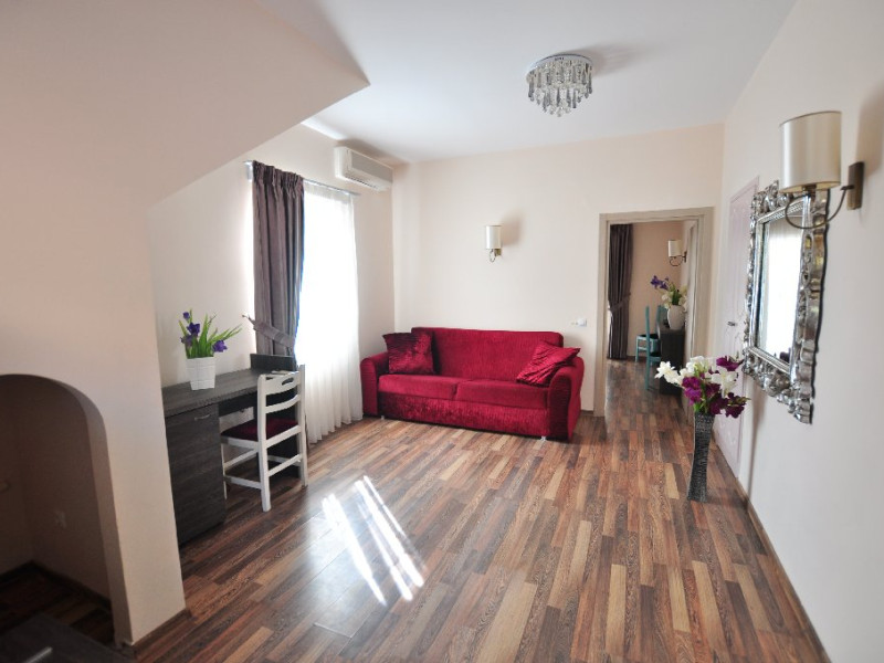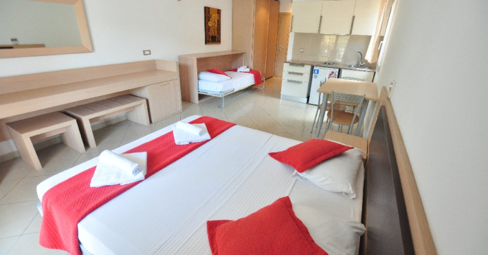 Descriere: Unitatea de cazare ofera camere duble spatioase si camere de familie, cuunul sau doua dormitoare, toate dotate cu aer conditionat individual, TV, frigider si balcon sau terasa cu vedere la gradina. Un restaurant,un bar, patru piscine, activitati de agrement pentru toate varstele sunt, de asemenea, la dispozitia oaspetilor. Localizare: Michelangelo Resort de 4 stele este un hotel All Inclusive intr-o zona verde si linistita din statiunea de pe litoralul Kassiopi, la doar 300 m de plaja din Soukia si la aproximativ 37 km de aeroportul din Corfu. Dotari camere: Toate unitatile de cazare ofera urmatoarele: aer conditionat/incalzire individuala (gratuit), TV LCD, mini-frigider, baie privata, uscator de par, articole de toaleta, balcon/terasa, serviciu de menajera (de 6 ori pe saptamana), schimbarea prosoapelor (de 3 ori pe saptamana), schimbarea lenjeriei (de 2 ori pe saptamana).
