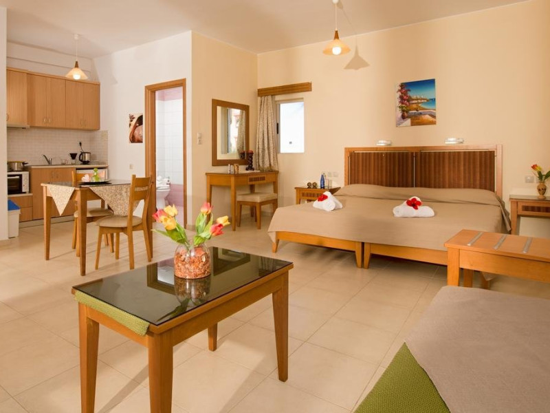Descriere: Fotis Studios Apartments este un complex micut situat in statiunea Gouves ce ofera cazare in studiouri si apartamente in regim self-catering. Localizare: Fotis Studios Apartments este localizat in Gouves, la cativa metri de statia de autobuz ce are curse din 15 in 15 minute spre toate orasele insulei. Aeroportul international din Heraklion se afla la 14 km de hotel. Plaja: Fotis Studios Apartments este situat la 400 m de plaja din Gouves, premiata cu Blue Flag. Sezlongurile si umbrelele sunt cu plata. Dotari camere: Fotis Studios Apartments detine 17 unitati de cazare de 3 tipuri. Studiouri de 40 mp, spatiu comun pentru salon, dormitor si bucatarie, pentru maxim 2+1 persoane. ( 2 paturi twin si o sofa). Apartamente de 40 mp cu un dormitor si un salon cu bucatarie pentru maxim 2+1 persoane (2 paturi twin si o sofa). Apartamente superioare de 70 mp cu dormitor si un salon spatios cu bucatarie, pentru maxim 2+2 persoane. ( 2 paturi twin si 2 sofale). Toate sunt dotate cu aer conditionat cu plata (7 euro/zi), wi-fi gratuit, seif (cu plata), TV satelit, fier de calcat (la cerere), bucatarie complet utilata (frigider, aragaz, fierbator, vesela), masa cu scaune, baie cu dus, uscator, balcon/terasa. Facilitati hotel: Fotis Studios Apartments asigura clientilor receptie 24 de ore, salon, camera pentru bagaje, gradina, parking, snack bar cu sala pentru micul dejun (la cerere, contra cost), pat pentru infanti (la cerere, gratuit). Web site: www.fotis-apts.gr/en/Clasificare oficiala: 3 stele Nota informativa: Pentru anumite facilitati din hotel sau din camera, hotelierul poate solicita taxe suplimentare. In momentul sosirii la hotel solicitati receptionerului sa va informeze cu exactitate asupra lor. Taxa de statiune obligatorie - se plateste la receptie: - 0,5 euro/camera/noapte la hotel 1-2* - 1,5 euro/camera/noapte la hotel 3*; - 3 euro/camera/noapte la hotel 4*; - 4 euro/camera/noapte la hotel 5*; - 0,5 euro/noapte/apartament sau studio la unitatile de cazare tip apartamente si studiouri.
