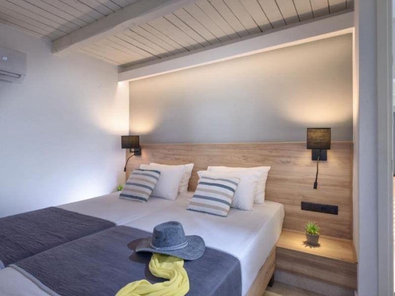 Dotari camere: Toate tipurile de camera (apartament superior cu 1 camera; apartament cu 2 camere; apartament superior cu 2 camere; maisonette superior cu 2 camere; apartament superior cu 3  sau 4 camere) sunt dotate cu baie, aer conditionat, televizor, seif, ifi, cuptor cu microunde, chicineta, uscator de par, telefon, terasa su balcon.