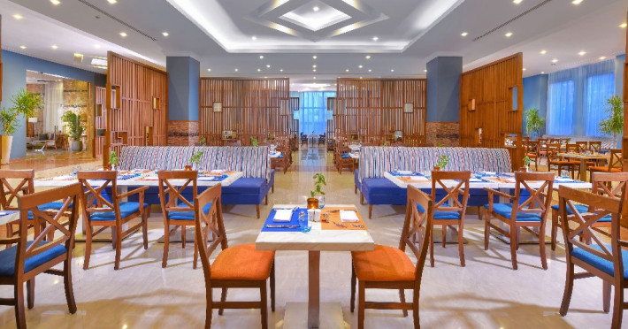Facilitati hotel: Hotelul pune la dispozitia oaspetilor: restaurant, bar, snack restaurant pe plaja, 2 restaurante a la carte, mai multe baruri, inclusiv la piscina si la plaja, piscina exterioara cu sezlonguri si umbrele, piscina pentru copii cu tobogane, miniclub, loc de joaca, animatie pentru copii si adulti, muzica live, darts, biliard, tenis de masa, boccia, centru Spa, sala fitness.