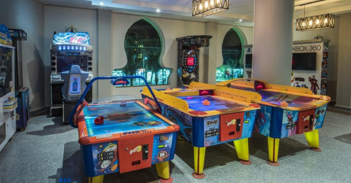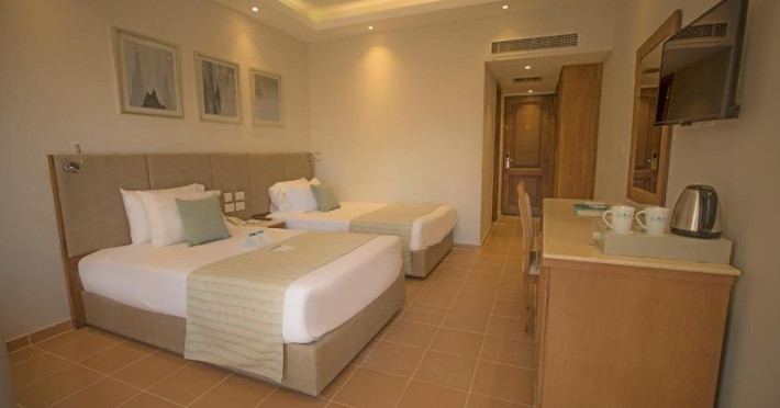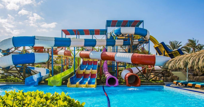 Facilitati hotel: Hotelul pune la dispozitie oaspetilor mai multe facilitati precum: 7 piscine din care una pentru copii, un aquapark cu 11 tobogane si un mini aquapark pentru copii, restaurante specializate in bucataria internationala, italiana, asiatica, egipteana, greceasca si in fructe de mare, o sala de gimnastica, un centru spa: sauna, jacuzzi, baie cu aburi, baie turceasca, masaj. De asemenea, exista 5 baruri, inclusiv un shisha bar. WiFi gratuit in tot resortul, receptie deschisa 24h, concierge, guest service centre, camera pentru bagaje, spalatorie si valet, salon infrumusetare, magazine de bijuterii si suveniruri.