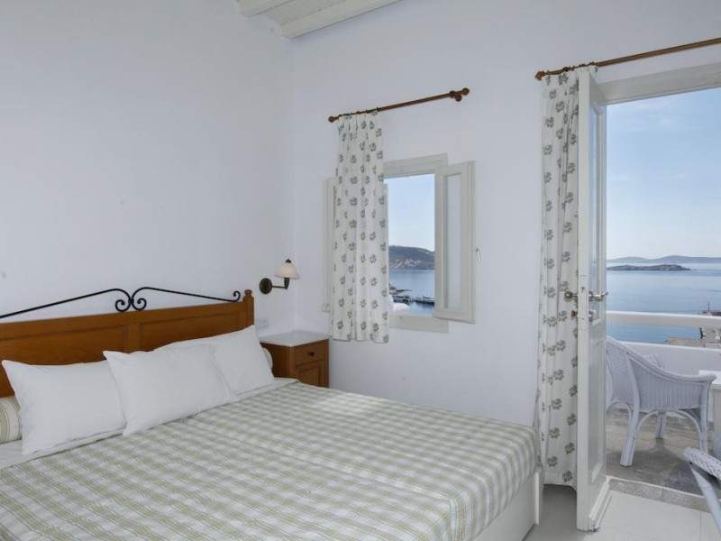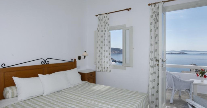 Dotari camere: Camerele sunt dotate cu mini frigider, televizor, aer conditionat, acces internet, seif. Facilitati hotel: acces internet Wi-Fi, parcare, piscina cu bar, bar, salon de mic dejun. Tip masa: mic dejun Clasificarea oficiala: 3* Web site: www.mykonosview.gr