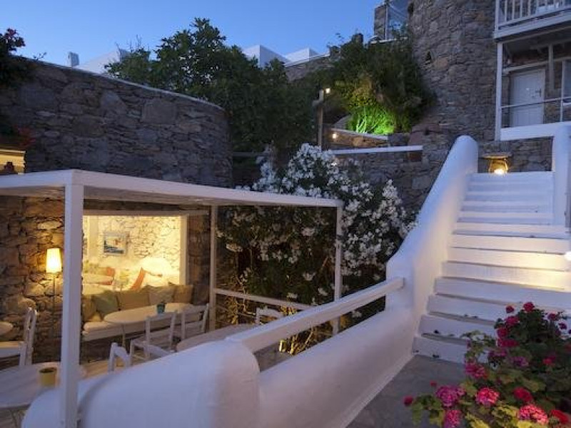 Localizare: Pe un mic deal ce ofera o priveliste panoramica spre oras si Marea Egee, la aproximativ 100 m de centrul orasului Mykonos si 50 m de statia de autobuz.