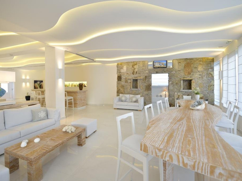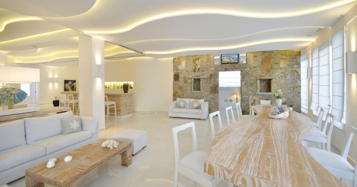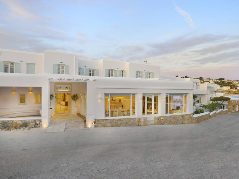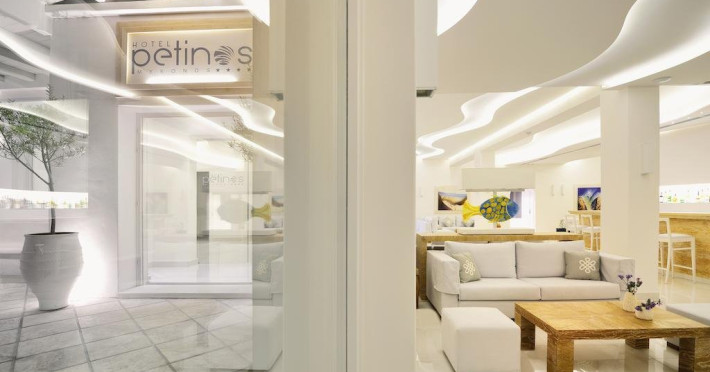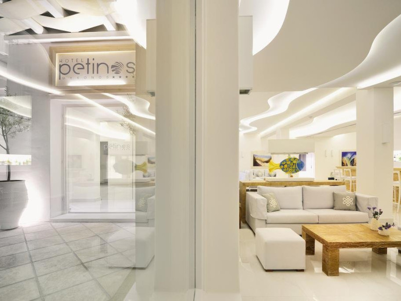 Descriere: Petinos a fost construit si decorat in traditionalul stil arhitectural cicladic, culorile si designul oferind oaspetilor o adevarata oaza de relaxare. Localizare: Petinos este localizat la cativa pasi de plaja Platys Gialos si la o scurta plimbare cu atubozul de orasul Mykonos. Distante: aproximativ 10 m de plaja Platys Gialos, statia de autobuz si supermarket, 2 km de Paradise Beach, 3 km de aeroportul din Mykonos, 4 km de Mykonos. Dotari camere: Fiecare camera a hotelului este dotata cu aer conditionat, televizor, telefon, mini frigider, acces internet wireless, seif, uscator de par, balcon/terasa cu vedere catre mare sau gradina. Facilitati hotel: Petinos pune la dispozitia oaspetilor sai un restaurant, bar, snack bar, meniuri cu diete speciale, terasa, piscina in aer liber, sala de fitness, salon de masaj, acces internet wireless, parcare privata. Facilitati copii: servicii de baby sitting Alte servicii si facilitati: room service, sali de conferinta, spalatorie, magazin de suveniruri. Plaja: de nisip Web site: www.petinoshotel.gr