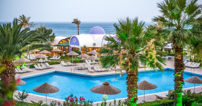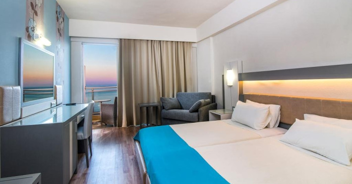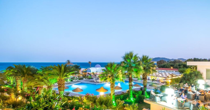 Localizare: In Faliraki, la doar 2 km de centrul statiunii, pe plaja cu nisip si pietricele, la 13 km de orasul Rodos si la 20 km de aeroport. Sezlongurile si umbrelele pe plaja sunt gratuite pentru persoanele care rezerva un pachet all inclusive si contra cost pentru oaspetii cu mic dejun sau demipensiune.