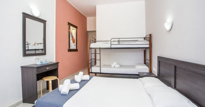 Dotare camere: Cele 127 camere sunt de 4 categorii: camere duble folosite ca single (22 mp), camere duble (22 mp), camere duble superioare (25 mp) si camere family superioare (27 mp). Toate camerele sunt dotate cu aer conditionat (contra cost), wi-fi gratuit, telefon, seif (cu plata, 3 euro/zi), TV satelit si canale cu muzica, mini frigider, baie cu dus sau cada, uscator de par, halat si papuci (la cerere), balcon/terasa.