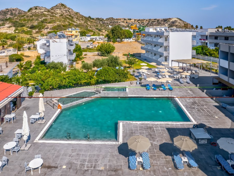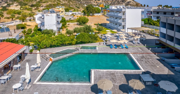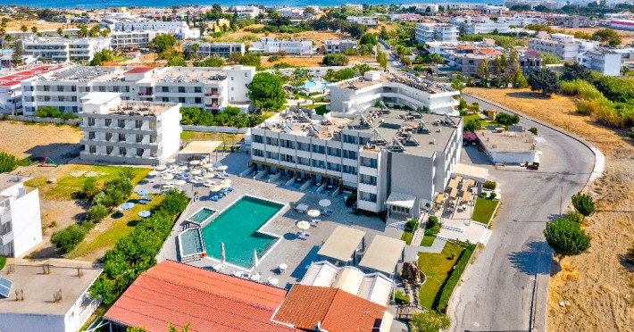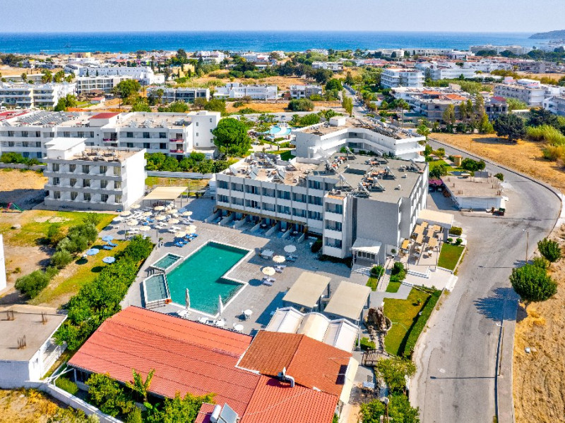 Localizare - La aprox. 19 km de aeroportul din Rodos. - La aprox. 900 m de centrul Faliraki, cu taverne, magazine si cluburi. - Parcul acvatic Faliraki Water Park la aprox. 3 km. - Orasul Rodos la aprox. 13 km. - Mini-market la distanta de mers pe jos. - Statie de autobuz local la aprox. 400 m. - Hotelul este un complex mic, format din cateva cladiri, situat intr-o zona linistita.