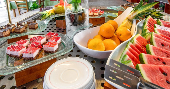 Camere Hotelul dispune de 64 de camere: - Camere duble standard (posibilitate 1 pat suplimentar pentru adult sau 2 paturi suplimentare pentru copii). - Camere duble superior (renovate in 2017, fara posibilitate de pat suplimentar). - Toate camerele au: baie (cada sau dus, WC, uscator de par), aer conditionat individual (gratuit intre 15.0615.09), frigider, TV satelit, balcon sau terasa.