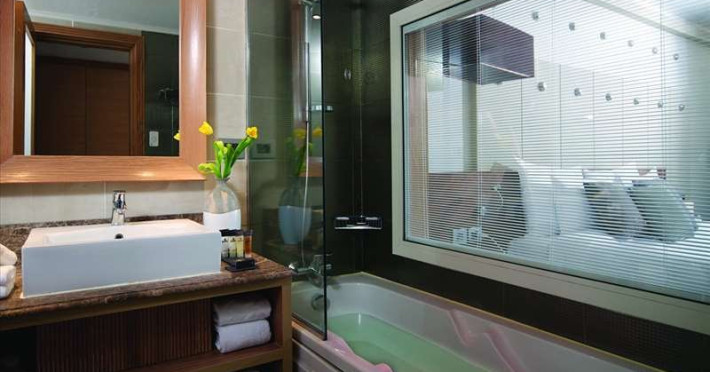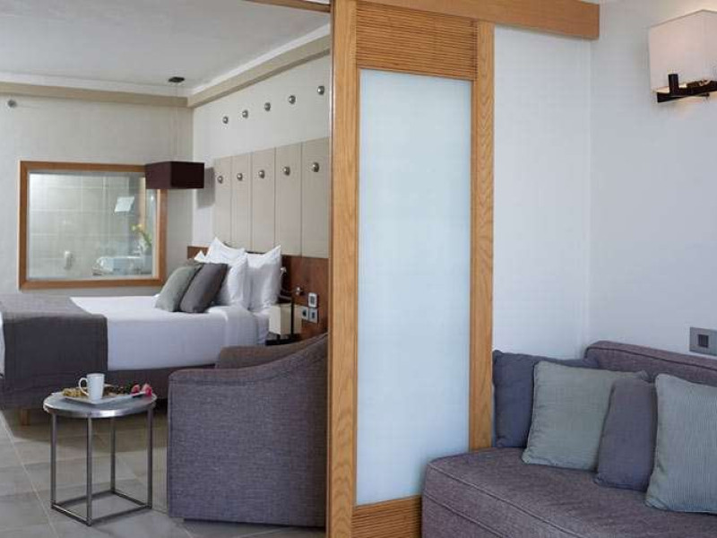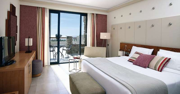 Dotari camere:Camerele sunt dotate cu mini bar, televizor LCD, aer conditionat, balcon sau terasa, seif, ceas cu suport de incarcare telefon, papuci de casa si halat de baie, fier si masa de calcat, uscator de par, facilitati de preparare a ceaiului sau cafelei. Oaspetii au acces la Wi-Fi din camera. Hotelul beneficiaza de mai multe tipuri de camere dintre care: standard room (48 mp), standard sea view room (41 mp) si family room (48 mp).