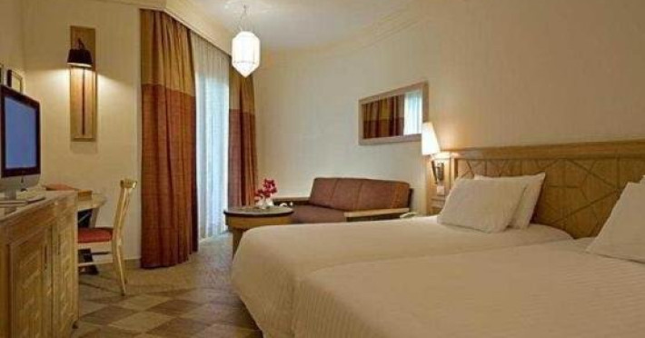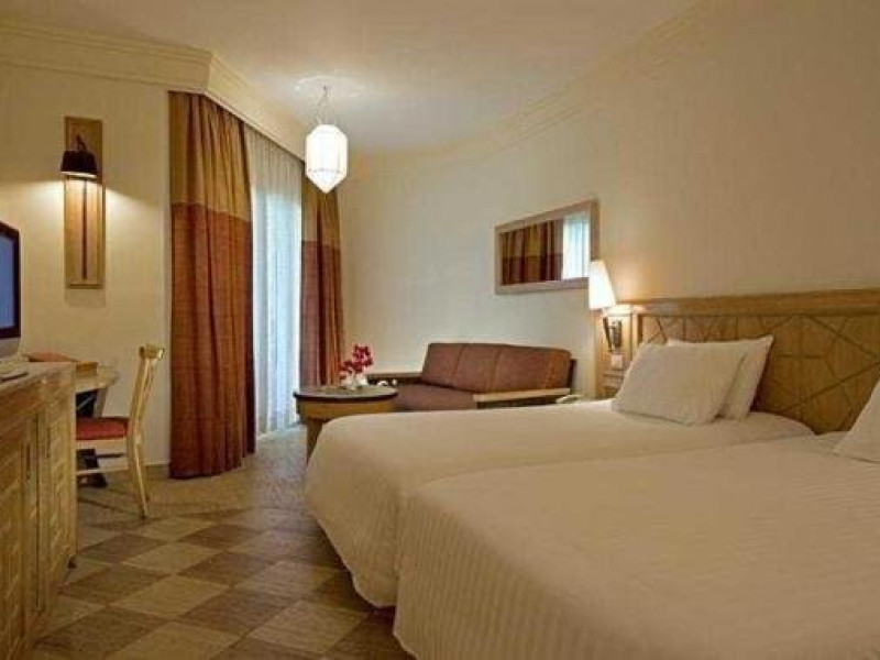 Localizare: Hotelul Novotel Palm Resort este situat in Sharm el Sheikh, in zona Naama Bay, cea mai animata statiune, in apropierea restaurantelor si magazinelor. Aeroportul international se afla la 10 km. Facilitati hotel: Datorita pozitionarii sale in statiunea Naama Bay, turistii au aces facil catre zona restaurantelor, magazinelor si plaja cu nisip fin. Printre facilitati, se numara centru SPA, piscina exterioara, restaurante a la carte, bar, acces internet. Dotari camere: Camerele sunt echipate cu un pat matrimonial / 2 paturi twin, o sofa, birou, TV, acces internet, facilitati pentru ceai si cafea, aer conditionat, minibar (la cerere), seif, uscator de par in baie.