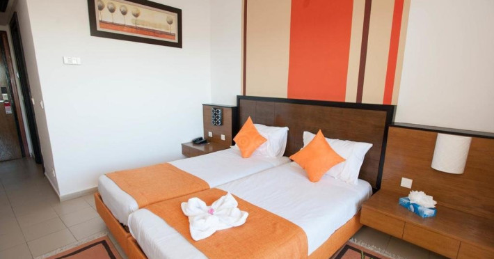Dotari camere: RIADH PALMS RESORT SPA  are 650 de camere si suite primitoare si dotate modern cu aer conditionat, TV satelit, telefon, seif, frigider, baie cu dus/casa si uscator de par.