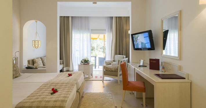 Descriere: Hotelul se afla pe malul marii in statiunea Hammamet, inconjurat de gradini superbe si este construit intr-un stil arhitectural combinatie intre Orient si Occident.