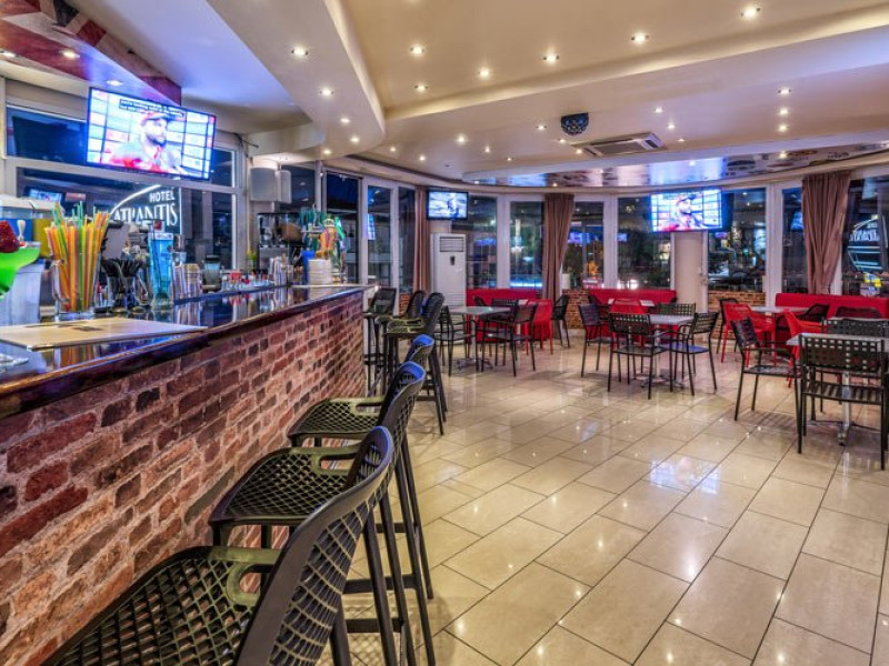 Dotari camere: Hotel Atlantis dispune de mai multe tipuri de camere. Toate sunt dotate cu : prajitor de paine, fierbator de apa, cafetiera, frigider mic de 80L, prospape, room service (intre orele 09.00-22.00, contra cost), baby sitter (la cerere si contra cost). Camerele au vedere spre munte si spre piscina. Curatenia in camere se face zilnic, asternuturile si prosoapele se schimba de 2 ori/sapt. AC contra cost; safe contra cost