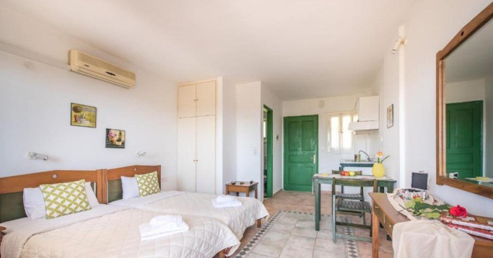 Hotelul Dolce Vita este situat in Kalamaki, la doar 1 km de plaja Kalamaki si la 800 de metri de centrul statiunii. Orasul Zakynthos si aeroportul international Zakynthos se afla la 3 km distanta, iar Laganas la aproximativ 4 km distanta. NOTA*** Apartamentul are doua dormitoare, iar in fiecare dormitor exista cate doua paturi. Apartamentul este complet utilat cu o chicineta si ustensile de bucatarie, frigider, fierbator. NOTA*** PENTRU S2025 AER CONDITIONAT IN APARTAMENT PE ZI: 9,00 EURO AER CONDITIONAT IN STUDIO PE ZI: 5,00 EURO LA 1000 M DE PLAJA Facilitati: PISCINA, SNACK BAR, PARCARE, INTERNET (GRATUIT) Facilitati camera: AER CONDITIONAT, TV, BUCATARIE, FRIGIDER, SEIF, WI-FI