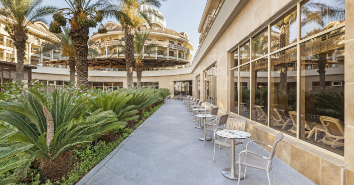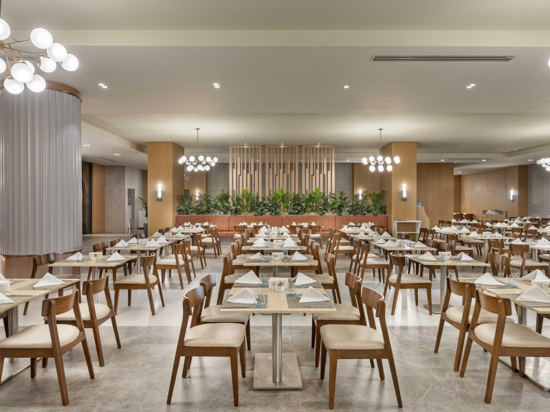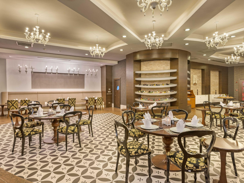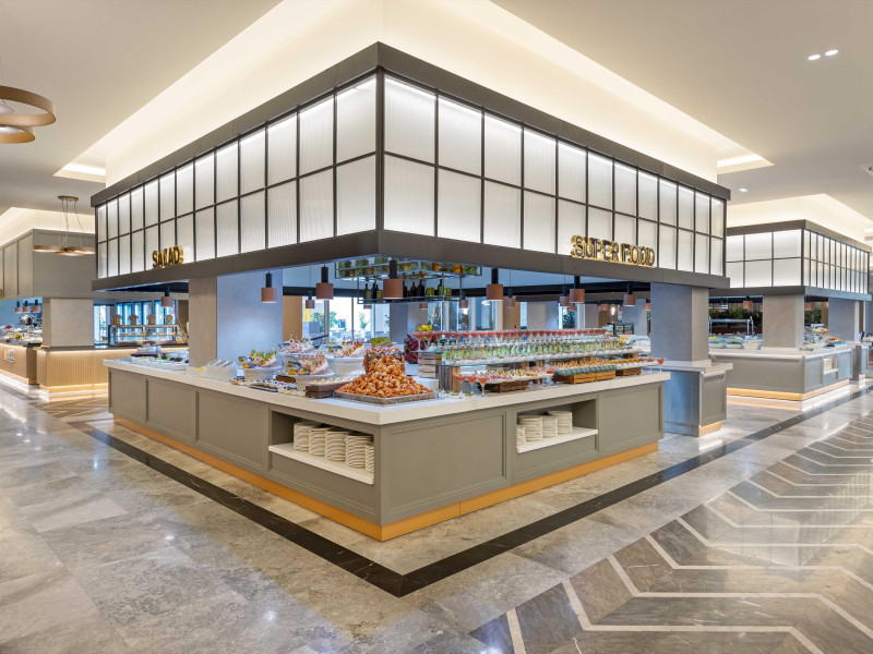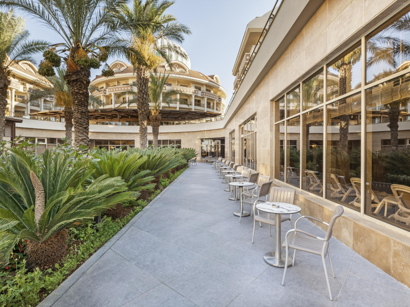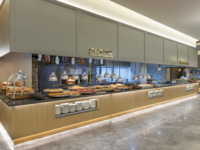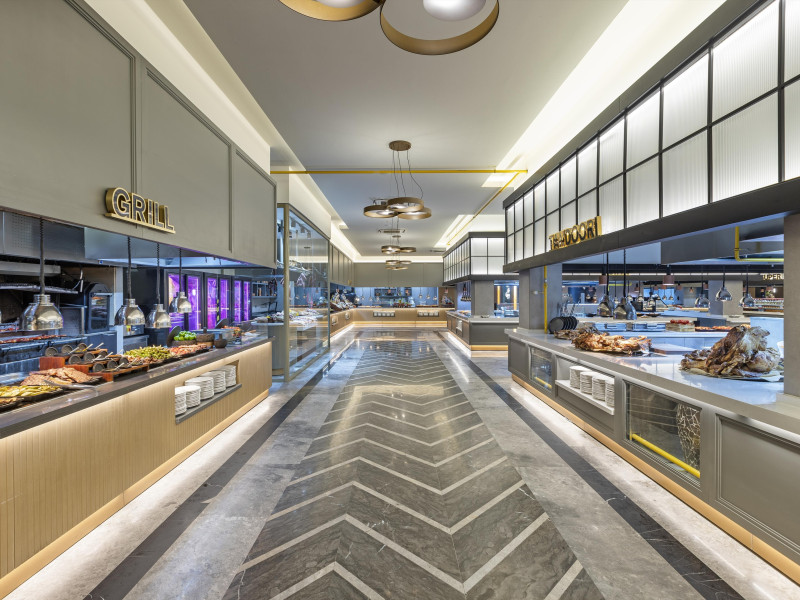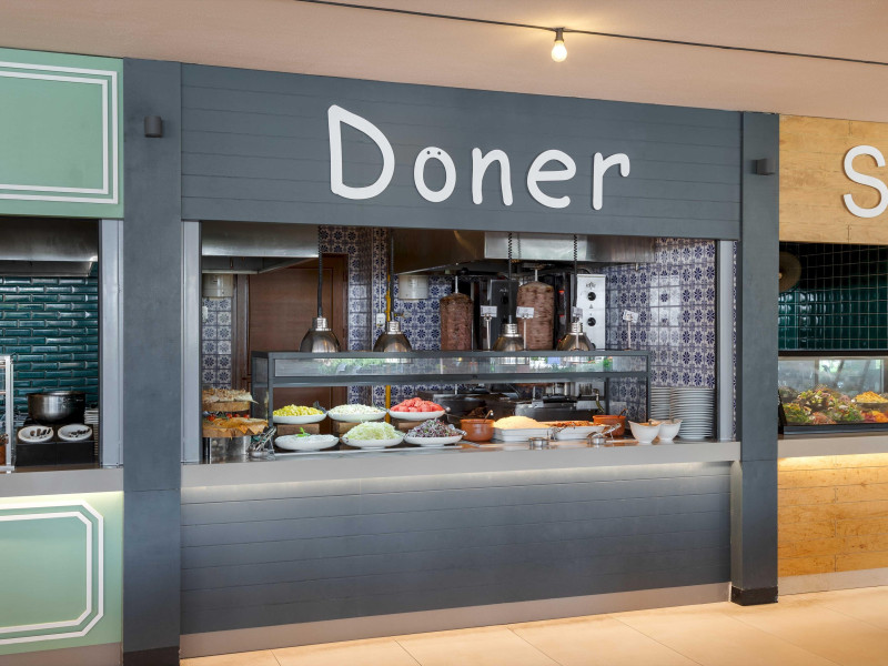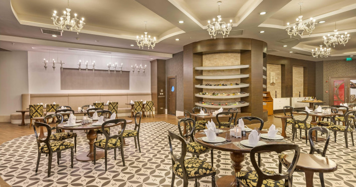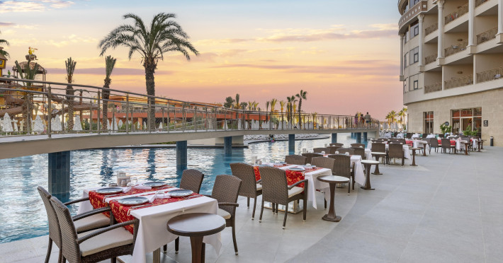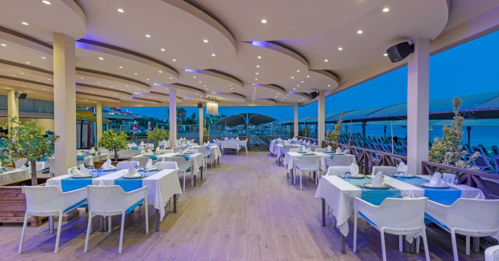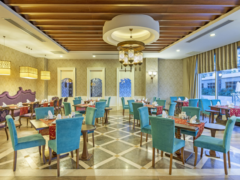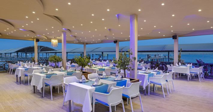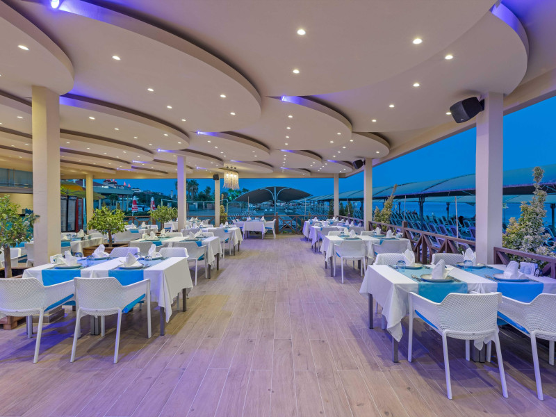 • Restaurant principal: 07.00-10.30 mic dejun tip bufet, 12.30-14.30 pranz tip bufet, 12.00-15.30 vafe, inghetata, gözleme, 19.00-21.00 cina tip bufet. Cafea, ceai si bauturi nealcoolice la micul dejun, bauturi nealcoolice pentru pranz si cina, bere, vin si bauturi alcoolice selectate (toate produse local), 23.00–02.00 bufet de noapte, 03.00–07.00 mic dejun devreme