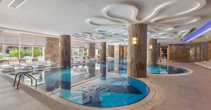 KIRMAN BELAZUR RESORT & SPA face parte din lantul hotelurilor Kirman, fiind situat intr-o zona mai linistita din Belek, numita Bogazkent. Il recomandam tuturor clientilor care doresc sa petreaca o vacanta activa in aceasta parte a Rivierei Turciei. Din statiunea nu lipseste un amfiteatru spatios, unde au loc in fiecare seara spectacole de dans si divertisment. Hotelul organizeaza, de asemenea, petreceri in gradina si pe plaja, iar in anumite zile va puteti bucura de muzica live.