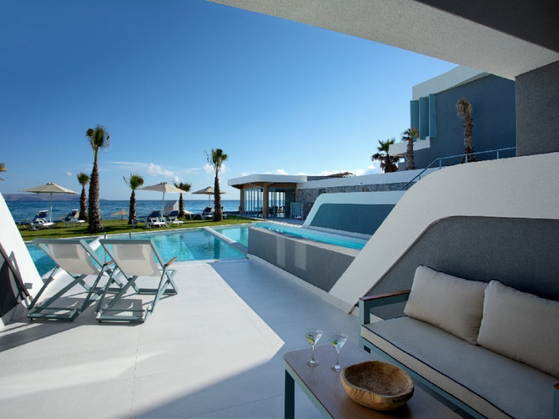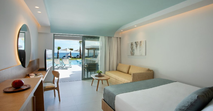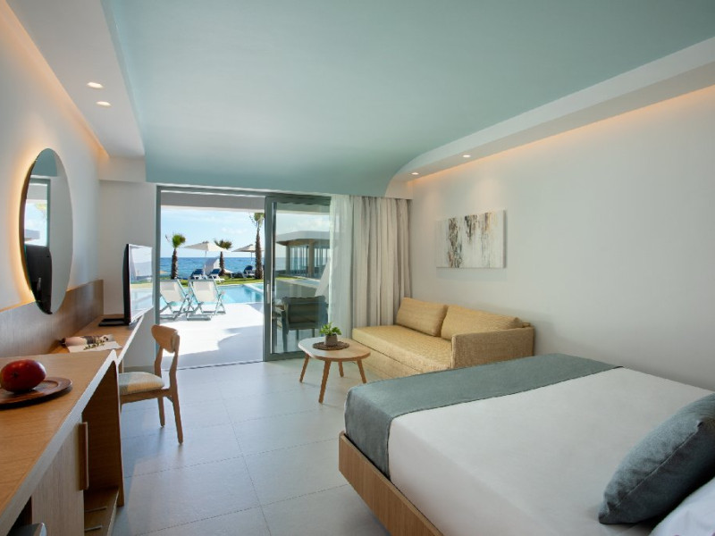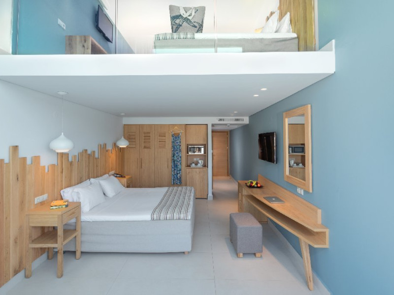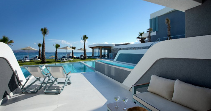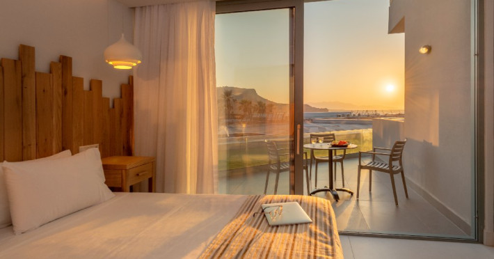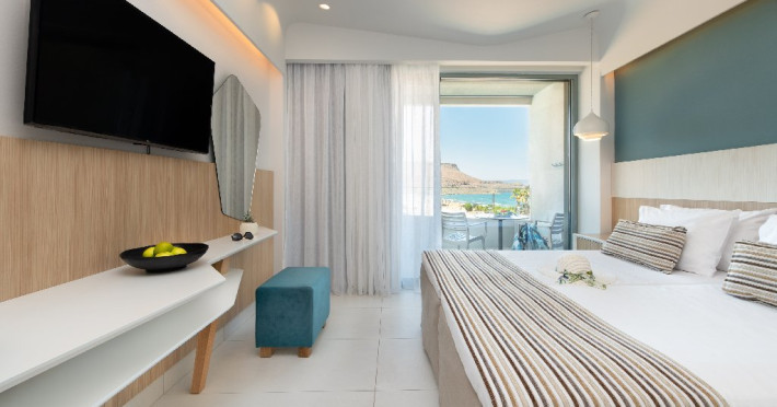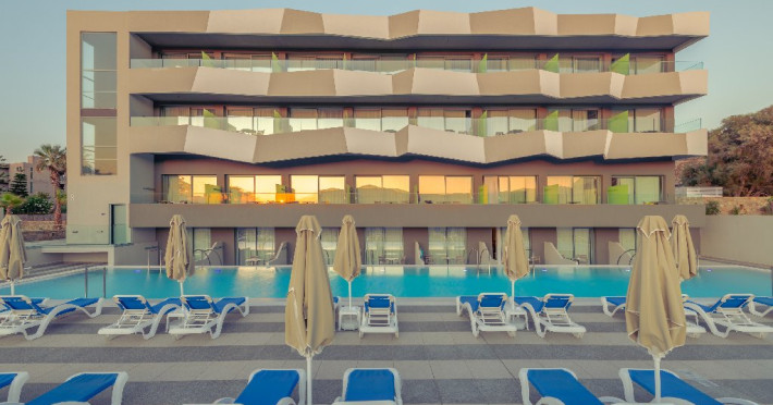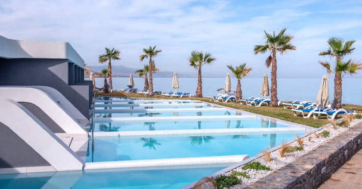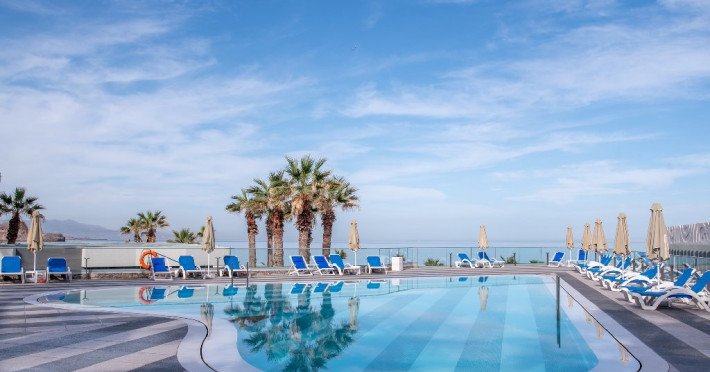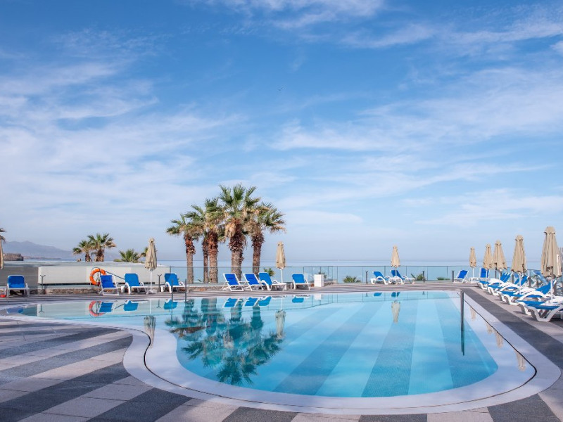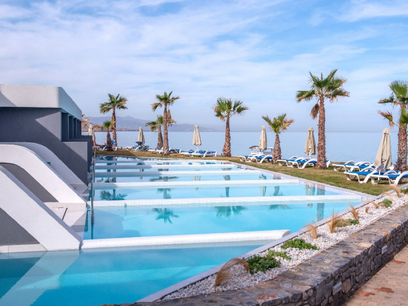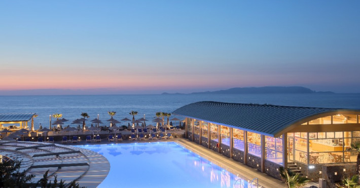 Descriere: Acest hotel de 4 stele a fost proiectat cu accent pe relaxare si distractie, fiind situat in mijlocul unei gradini magnifice, cu palmieri si flori colorate, avand vedere la Marea Cretei. Recomandat cuplurilor si familiilor cu copii.