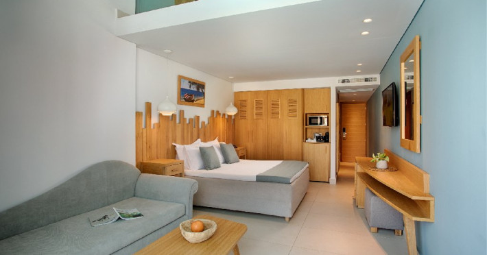 Dotari camere: Hotelul are in total 240 de camere cu un design modern si sunt orientate spre mare. Dotarile standard includ: aer conditionat individual, wi-fi, seif, televizor satelit, telefon (cu plata), mini frigider, baie cu cada, uscator de par, facilitati pentru preparare ceai/cafea, fier de calcat (gratuit, la cerere), balcon/terasa.