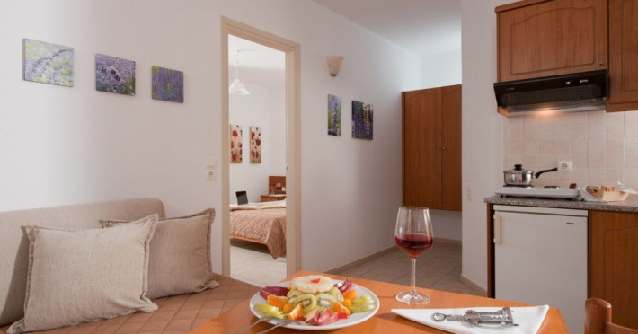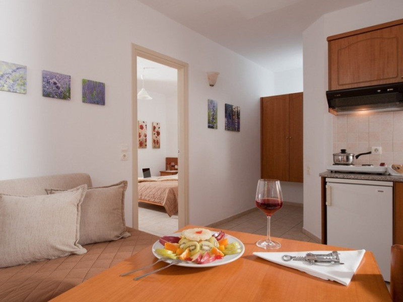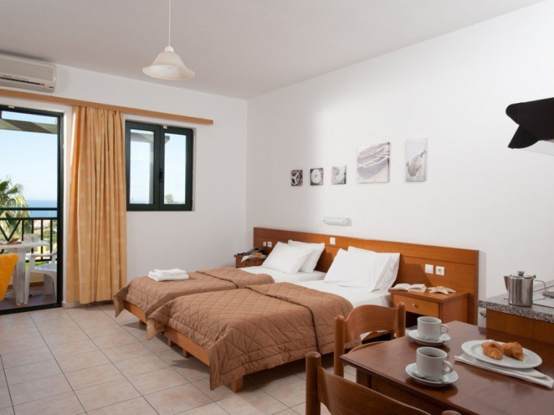 Dotari camere: Hotelul Asterias Village este compus din 32 studiouri, 43 de apartamente cu un dormitor si 14 maisonette iimpartite in 10 cladiri. Toate camerele sunt dotate cu aer conditionat, wi-fi gratuit, telefon, seif (cu plata), TV satelit, baie cu dus sau cada, uscator de par, balcon sau terasa. Apartamentele cu vedere la mare au si mini bucatarie.