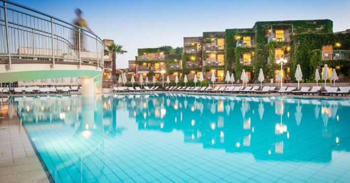 Facilitati: Restaurante si baruri: un restaurant principal Pergola, restaurant a la carte Olive Tree, un snack bar, un bar in zona receptiei si un bar pe plaja. Sport si recreere: piscina interioara, 2 piscine exterioare cu sezlonguri si umbrele gratuite, centru spa cu Jacuzzi, saloane de masaj, sauna , baie de aburi, teren de baschet, volei, biliard, darts, tenis de masa, 2 terenuri de tenis, centru fitness, teren de fotbal, mini golf, sala de jocuri (masa de brigde), discoteca (de 3 ori pe saptamana).Alte facilitati: 3 magazine, 2 sali de conferinte (max 500 persoane).