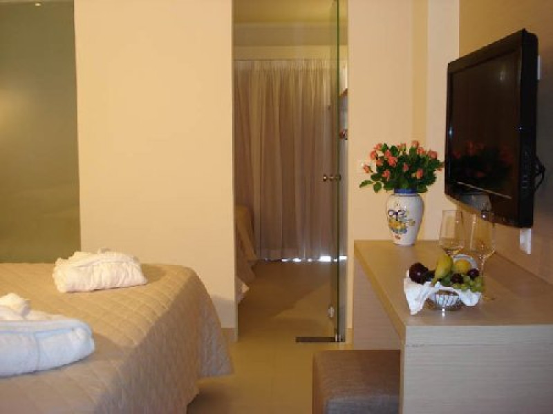 Dotari camere: Hotelul THE ISLAND dispune de 298 de camere intre 23 mp si 45 mp. Toate camerele sunt moderne, elegante si spatioase, in tonuri naturale de bej, creand o atmosfera de confort si relaxare. Majoritatea ofera vedere panoramica spre Marea Egee sau gradina si au ca dotari standard aer conditionat, telefon, frigider, seif, televizor LCD, acces internet Wi-Fi, baie cu dus sau cada (open space sau inchisa), uscator de par, halate si papuci de baie, prosoape de plaja si piscina gratuite, facilitati pentru pregatirea ceaiului/cafelei, balcon/terasa.