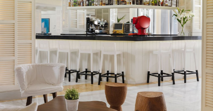Facilitati HOTEL H10 BLUE MAR: Hotelul pune la dispozitia oaspetilor: restaurant bufet, 2 baruri, centru Spa cu sala fitness, jacuzzi, sauna, piscina exterioara cu terasa pentru plaja cu sezlonguri si umbrelute, Wi-Fi gratuit.