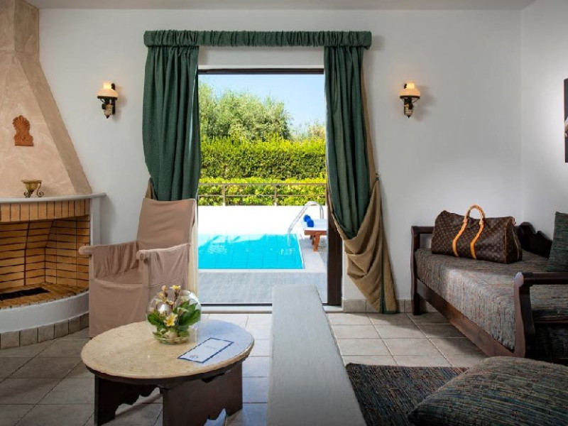 Dotari camere: HOTELUL HERSONISSOS MARIS are 204 camere de 3 categorii: camere duble cu vedere la mare sau gradina de 25 mp (max 2+1 pax), camere duble superioare cu acces la piscina de 25 mp (max 2+1 pax, numai pentru adulti) si maisonette cu piscina privata de 60 mp (max 2+2 pax). Toate camerele sunt placut decorate in nuante pastel, dotate cu aer conditionat, televizor satelit, wi-fi, telefon, frigider, seif (cu plata), baie cu dus sau cada, uscator de par, balcon/terasa. In maisonette si camerele duble cu acces la piscina se ofera un pachet de bun venit cu vin, cos de fructe si apa minerala. Copiii nu sunt acceptati in camerele duble cu acces la piscina.