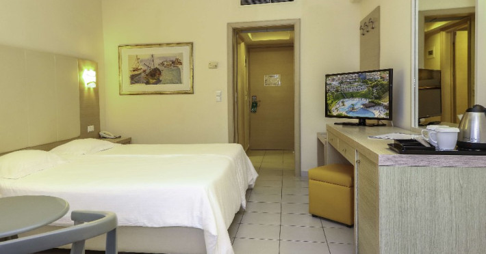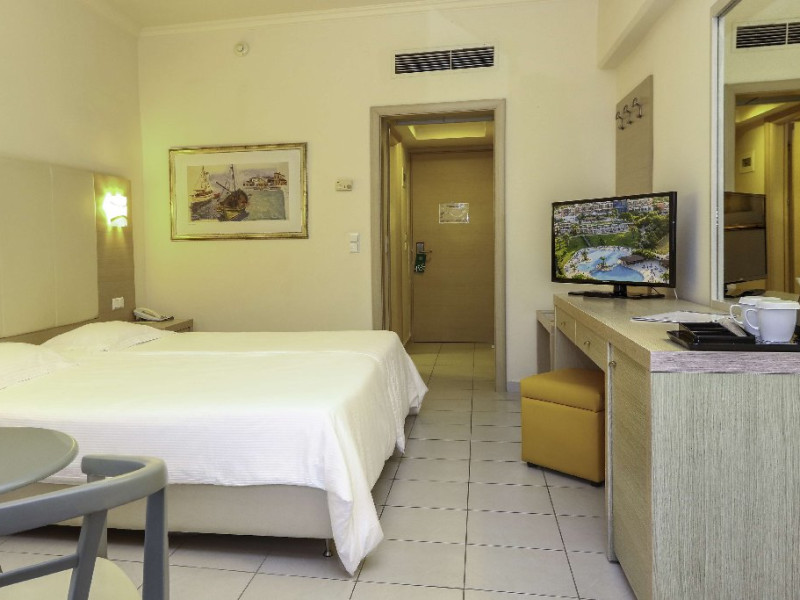 Localizare: in Kalithea, pe un deal cu o panorama frumoasa asupra marii, la 250 m distanta de plaja (plaja este stancoasa, cu nisip si pietricele), la 6 km de orasul Rodos si la 17 km de aeroport. Durata transfer: intre 30 si 60 minute. Caracteristici hotel: deschis in 1993, renovat in anul 2008, are 283 camere situate in 4 cladiri diferite, 2 restaurante, 2 baruri, piscina in aer liber, piscina pentru copii, sezlonguri si umbrelute la piscina gratuit, magazine, salon TV, sala de conferinte si banchete, internet wi-fi gratuit peste tot, capela/biserica, minimarket. Pentru sezlonguri si umbrelute pe plaja se plateste suplimentar. Prosoapele de plaja se inchiriaza cu plata unui depozit. Dotare camere: camerele standard (aprox. 23 - 27 mp, majoritatea sunt twin) au o capacitate maxima de 3 persoane si sunt echipate cu: baie cu cada sau dus, aer conditionat (functioneaza in perioada 01.06 - 30.09), TV satelit, uscator de par, telefon, frigider, balcon sau terasa, seif (cu plata). Camerele family (aprox. 39 mp) au 4 paturi, sunt alcatuite dintr-un singur spatiu de cazare si au aceleasi facilitati ca in camerele standard. Activitati: gimnastica, minigolf, volei, baschet, darts, boccia, tenis de masa. Urmatoarele servicii sunt oferite cu plata suplimentara: sala cu jocuri electronice, tenis de camp, biliard, SPA: sauna, masaj, jacuzzi. Zilnic se organizeaza programe de animatie si spectacole in timpul serii. Facilitati pentru copii: piscina, loc de joaca, mini club, disco. Tip de masa: demipensiune: mic dejun si cina bufet. Opinia noastra: hotel cu multiple facilitati si spatii exterioare ample (gradina, piscina exterioara). Clasificarea tour operatorului: 4*. Nota: pentru anumite facilitati, hotelul poate solicita taxe suplimentare; in momentul sosirii la hotel, solicitati receptiei sa va informeze cu exactitate asupra lor. Web: www.krestenpalace.gr