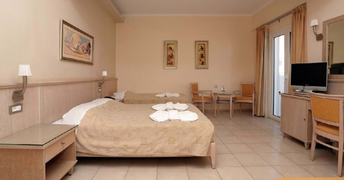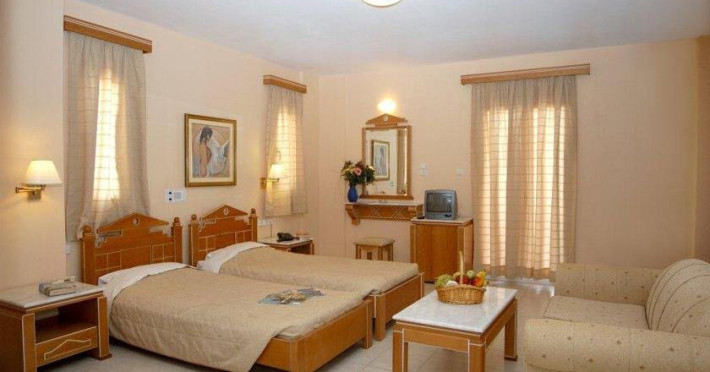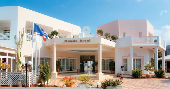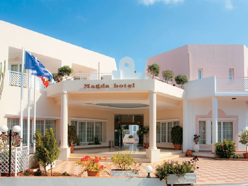 Dotari camere: La HOTEL MAGDA cele 120 de camere au un aspect specific insulelor grecesti si sunt dotate cu TV satelit, radio, telefon, aer conditionat, baie cu dus sau cada, uscator de par, seif (contra cost, 15 euro/saptamana), frigider, facilitati pentru prepararea cafelei si ceaiului.