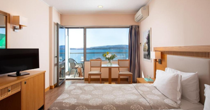 Pentru vacante memorabile, va uram bun venit la Hotelul Mediterranee, un hotel de 4 stele care ofera toate facilitatile necesare unei vacante de neuitat. Acesta este situat intr-o locatie ideala, intr-o zona linistita pe coasta Lassi, langa Argostoli, capitala insulei Kefalonia. Hotelul se afla chiar deasupra unui mic golf cu o plaja de nisip, oferind o priveliste spectaculoasa asupra golfului Lixouri. Apele cristaline ale marii fac din plaja un loc ideal pentru inot. Exista o varietate de activitati la care puteti participa in cadrul hotelului, precum terenuri de tenis, masa de ping-pong sau seri cu muzica greaca live. De asemenea, hotelul dispune de o sala de mese spatioasa, un bar si restaurant pe plaja, un bar la piscina, un bar interior, un minimarket, un magazin de bijuterii, un lounge cu TV si un centru de conferinte. In plus, veti gasi zone spatioase de relaxare atat interioare, cat si exterioare, unde va puteti destinde alaturi de prieteni. Va informam ca animalele de companie nu sunt acceptate la hotel.