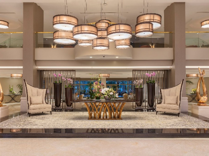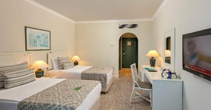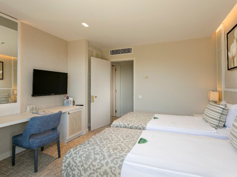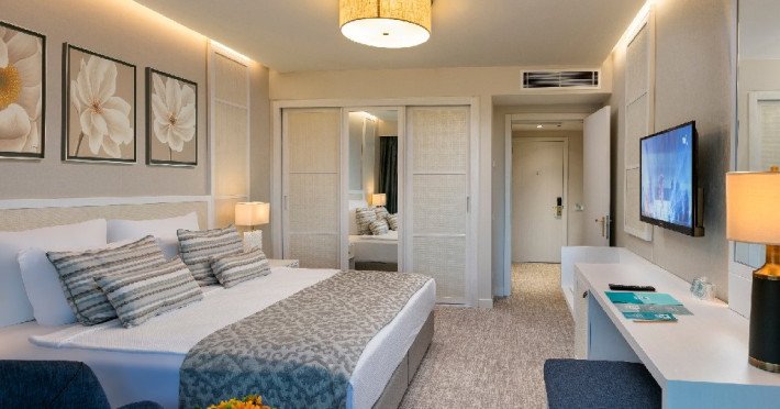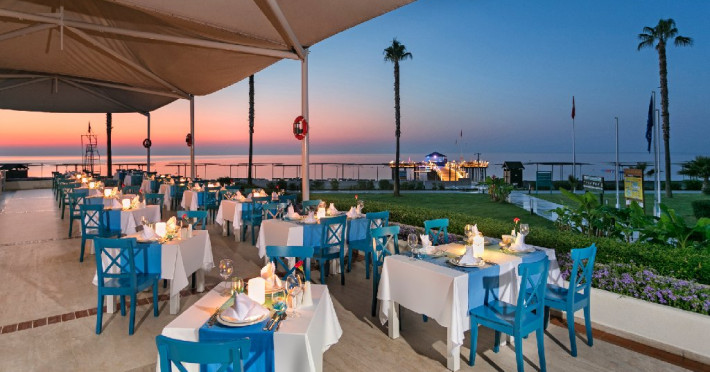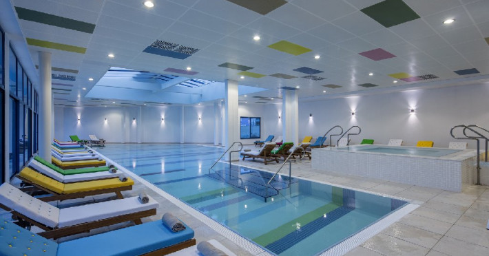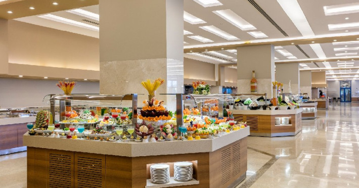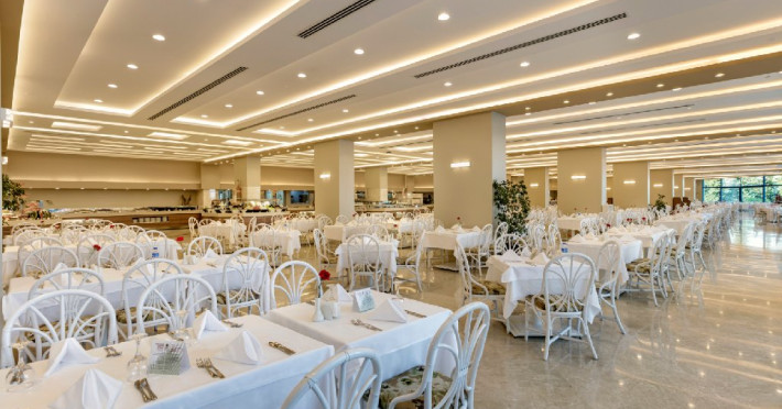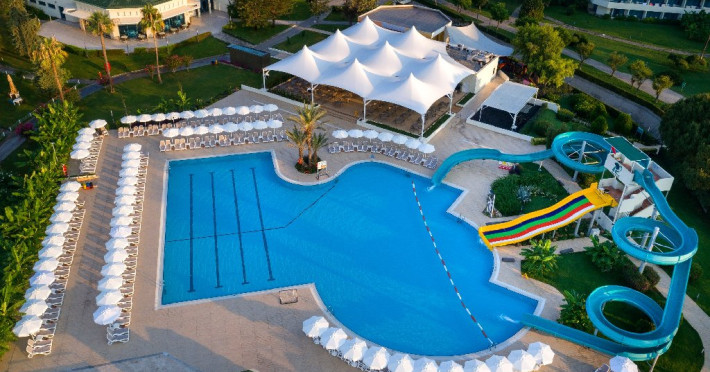 Facilitati hotel: Oaspetii pot beneficia de restaurant principal, restaurante A la Carte, preparate fara gluten, baruri, piscine exterioare, piscina interioara, sezlonguri si umbrele, tobogane, programe de animatie si divertisment, yoga, centru fitness, centru spa, biliard, bowling, darts, boccia, tenis, minigolf, basket, volei, sporturi de apa, sali de conferinte.