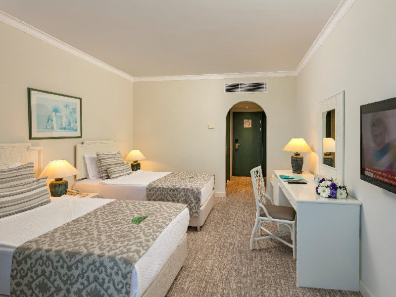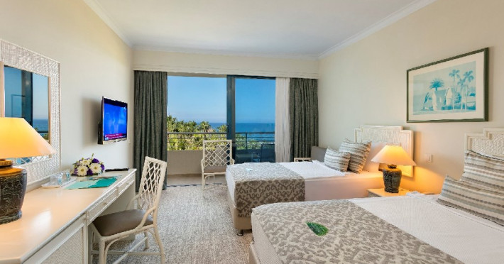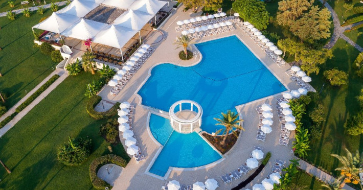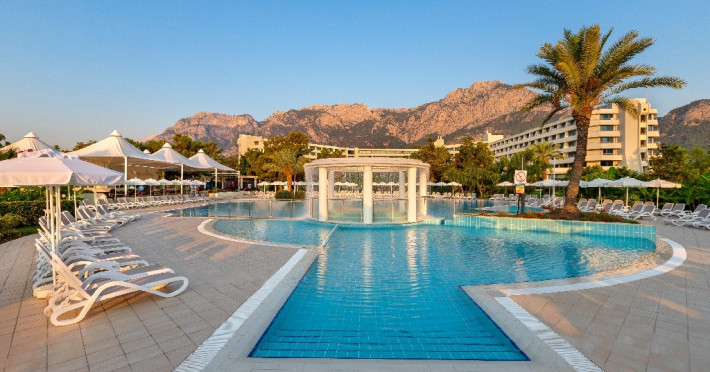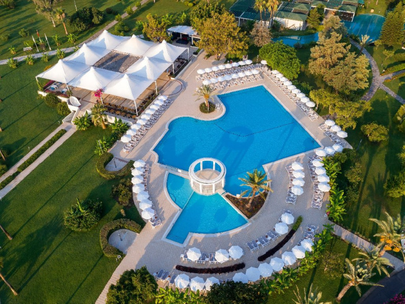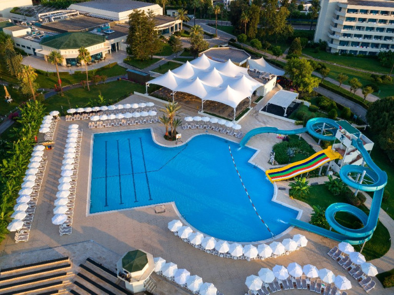 Descriere: Mirage Park Resort se afla la poalele Muntilor Taurus, unde padurea de pini si livezile de portocali se imbina armonios cu apa albastra si limpede a Mediteranei.