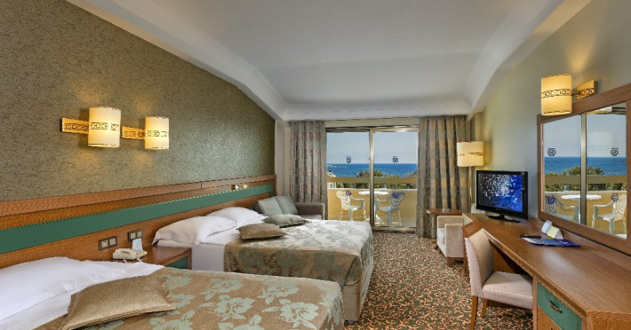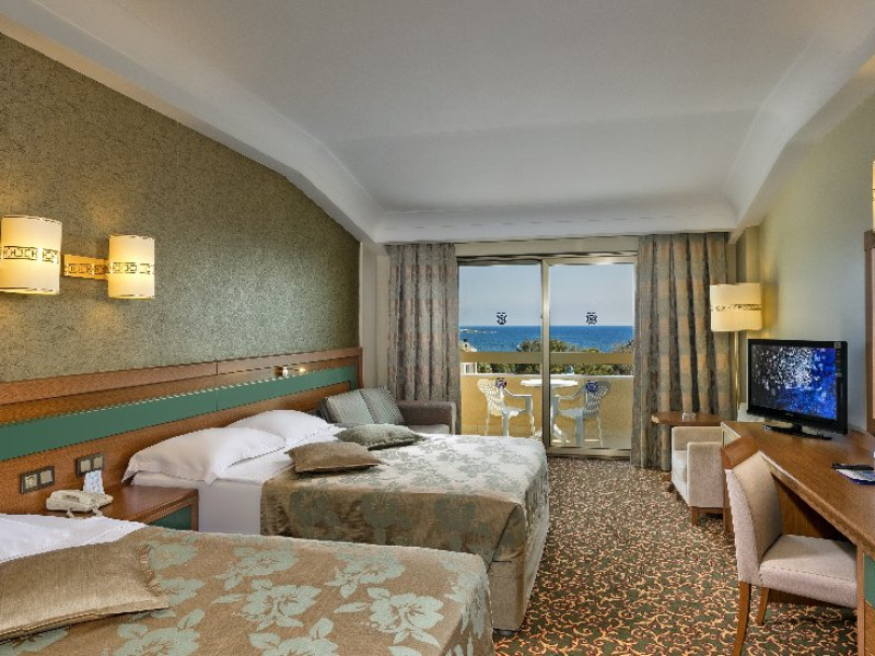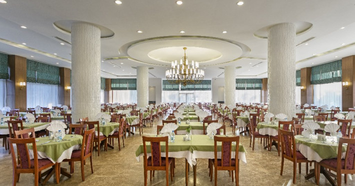 Facilitati hotel: Hotelul pune la dispozitia oaspetilor: restaurant, restaurant a la carte, snack-bar, patiserie, mai multe baruri inclusiv la plaja, 3 piscine exterioare (dintre care una pentru copii), 2 piscine interioare (una pentru copii), tobogane de apa, centru Spa, sala fitness, spectacole si muzica live, volei pe plaja, tenis de masa, darts, water polo, aerobic, miniclub.