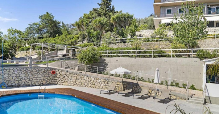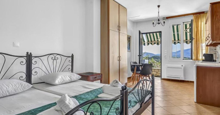 Descriere: Paradiso Verde Apartments din Kefalonia este un mic complex de apartamente mobilate, de constructie luxoasa, caracterizat de o atmosfera prietenoasa si familiala. Fiecare apartament dispune de o bucatarie complet echipata, baie proprie si terasa independenta cu vedere.Complexul este situat intr-un mediu linistit, in mijlocul unei gradini de 2.000 mp, plina de copaci si flori.
