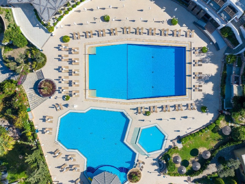 Facilitati hotel: beneficiaza de restaurante, 4 baruri, sala de conferinte, piscina in aer liber, piscina pentru copii, mini golf, mini club, animatie, mini market, loc de joaca pentru copii, jacuzzi, sauna, teren de tenis.