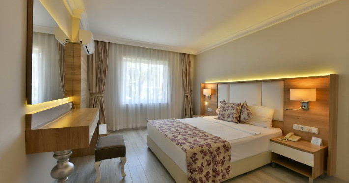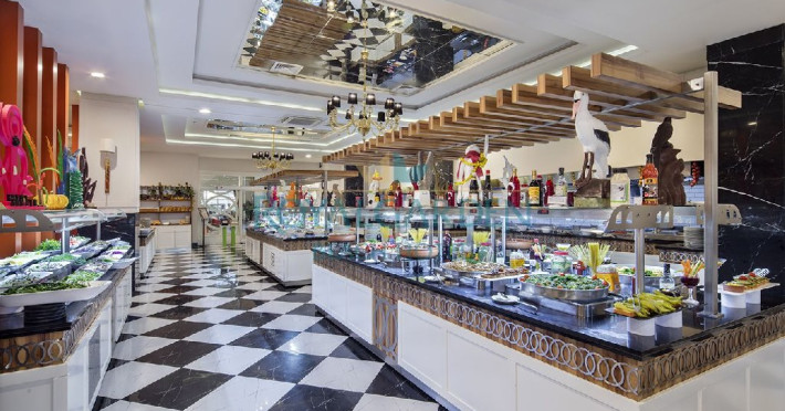 Facilitati hotel: Hotelul pune la dispozitia turistilor: restaurante a la carte, cafenele, baruri, patiserie, mai multe piscine cu sezlonguri si umbrele, aqua park, zona de plaja privata, sala de fitness, divertisment de seara, club pentru copii, loc de joaca, spa si centru wellness, masaj, baie turceasca, sauna, volei pe plaja, fotbal pe plaja, gimnastica acvatica, biliard, tenis de masa, darts, si boccia. Hotelul ofera activitati potrivite pentru toate grupele de varsta, divertisment pe tot parcursul zilei si seara, asigurat de o echipa de animatie profesionista.