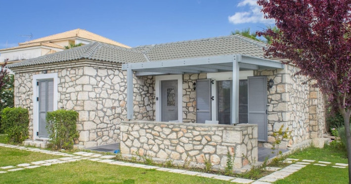 Near Laganas Beach. Located in Zakynthos, this villa is within a 5-minute drive of National Marine Park of Zakynthos and Laganas Beach. This villa is 1.7 mi (2.8 km) from Kalamaki Beach and 3.6 mi (5.8 km) from Zakynthos Ferry Terminal. Treat yourself to a stay in this individually furnished villa, which features a fireplace. A kitchen is outfitted with a refrigerator, a stovetop, and a microwave. Conveniences include a washer/dryer and an iron/ironing board. Take in the views from a garden and make use of amenities such as complimentary wireless Internet access and barbecue grills.