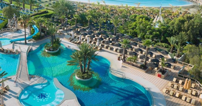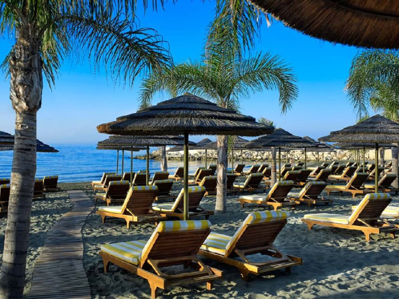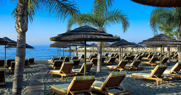 Hotelul este situat direct pe plaja cu nisip fin premiata cu Blue Flag din estul statiunii Limassol.