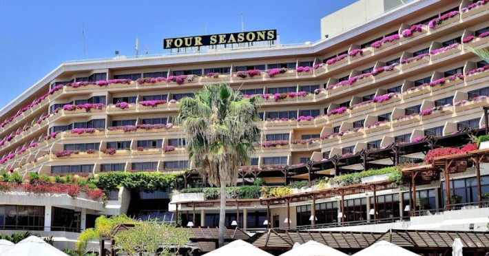 Hotel Four Seasons are 304 camere, dintre care 37 suite, incluzand Penthouse Suite, Family Suite, Family studio, camere cu vedere la mare sau interioara si de asemenea, Garden Studios rezervate doar pentru adulti. Toate camerele (renovate complet in 2005) sunt dotate cu bai luxoase, uscator de par, halate de baie, telefon, TV satelit, pay TV, play station, acces la internet, radio, mini bar, facilitati pentru prepararea cafelei si a ceaiului, sistem de monitorizare a bebelusilor, aer conditionat si balcon spatios.