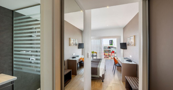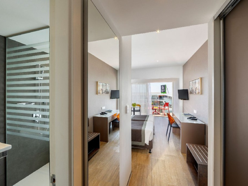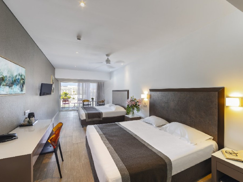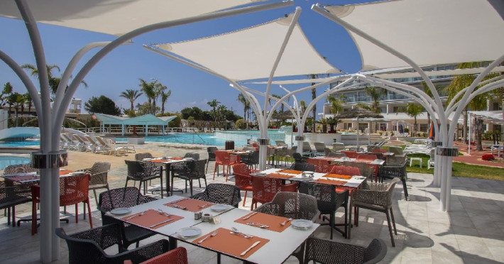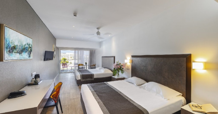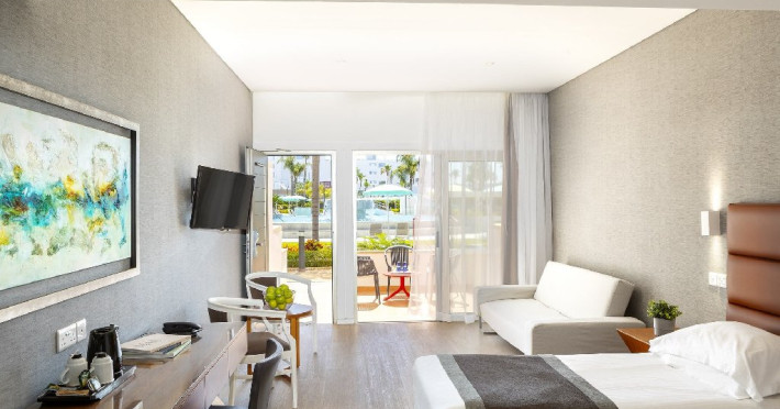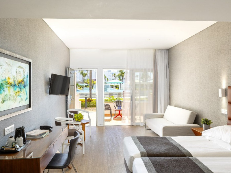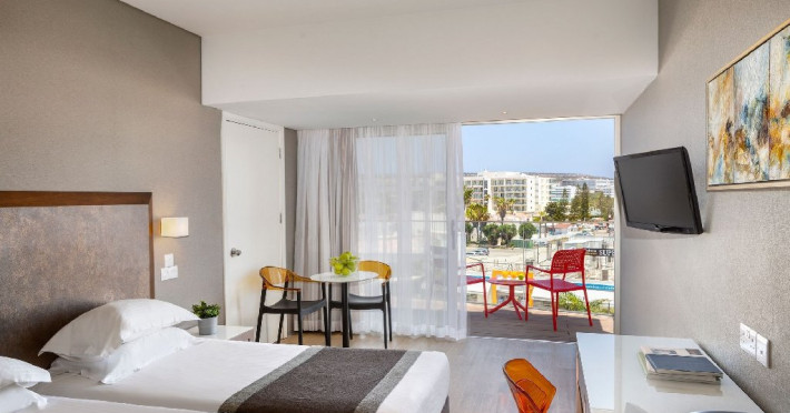 Dotari camere: Hotel Faros ofera o gama de camere spatioase, confortabile si moderne, cu vedere la mare sau gradina (dupa preferinta clientului), camere de familie, apartamente cu gradina, si suita pentru cuplu. Toate sunt alegeri exceptionale pentru a garanta o vacanta superba in Ayia Napa, Cipru.