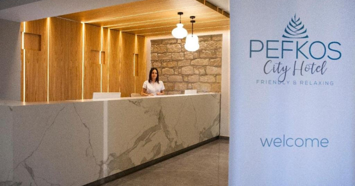 Descriere: Hotelul Pefkos City, recent renovat, deschis pe 7 iunie 2018, este detinut si condus de o familie de 10 membri, renumita pentru atmosfera sa calda, relaxanta, ospitaliera si prietenoasa, ceea ce il face ideal pentru toate tipurile de vizitatori. La Pefkos City, ei nu te primesc in hotelul lor, te primesc acasa la ei!